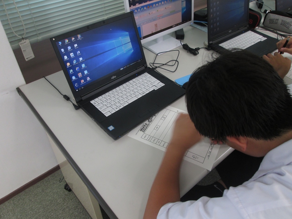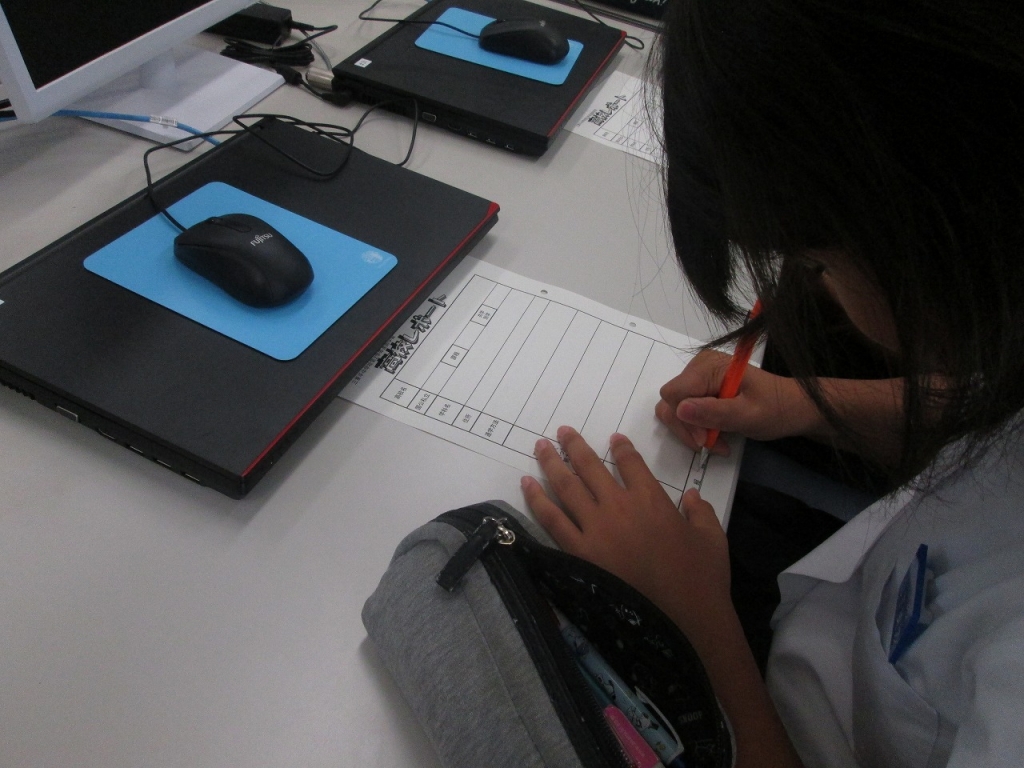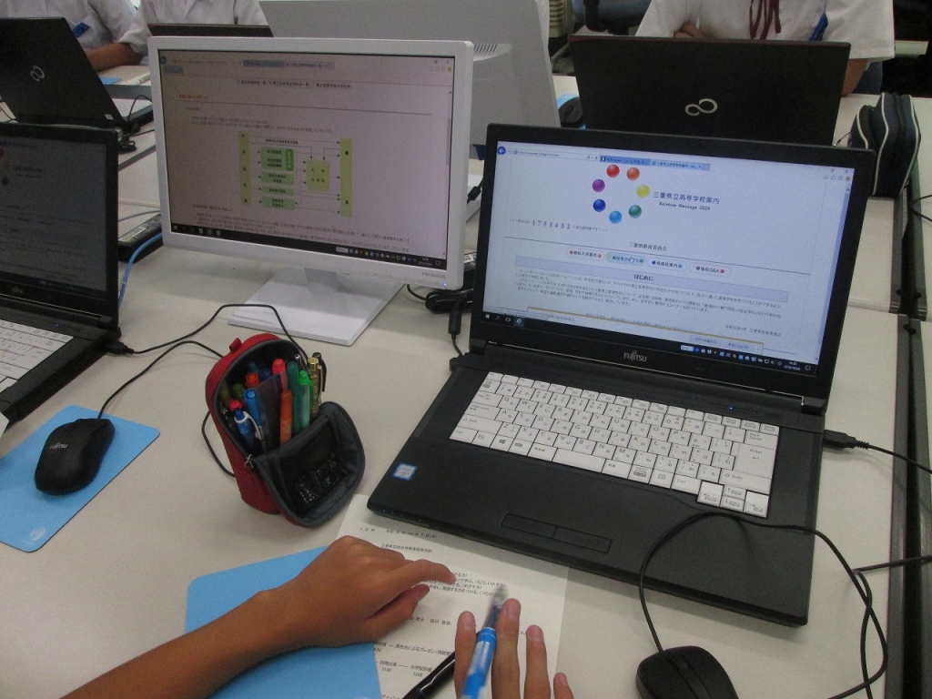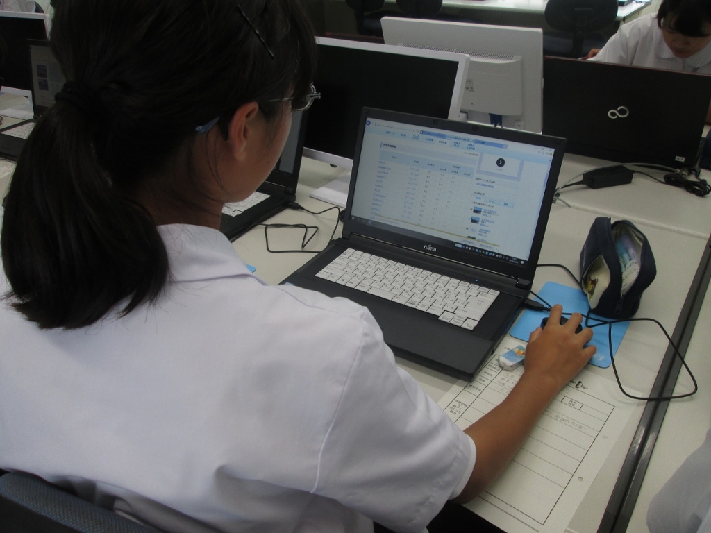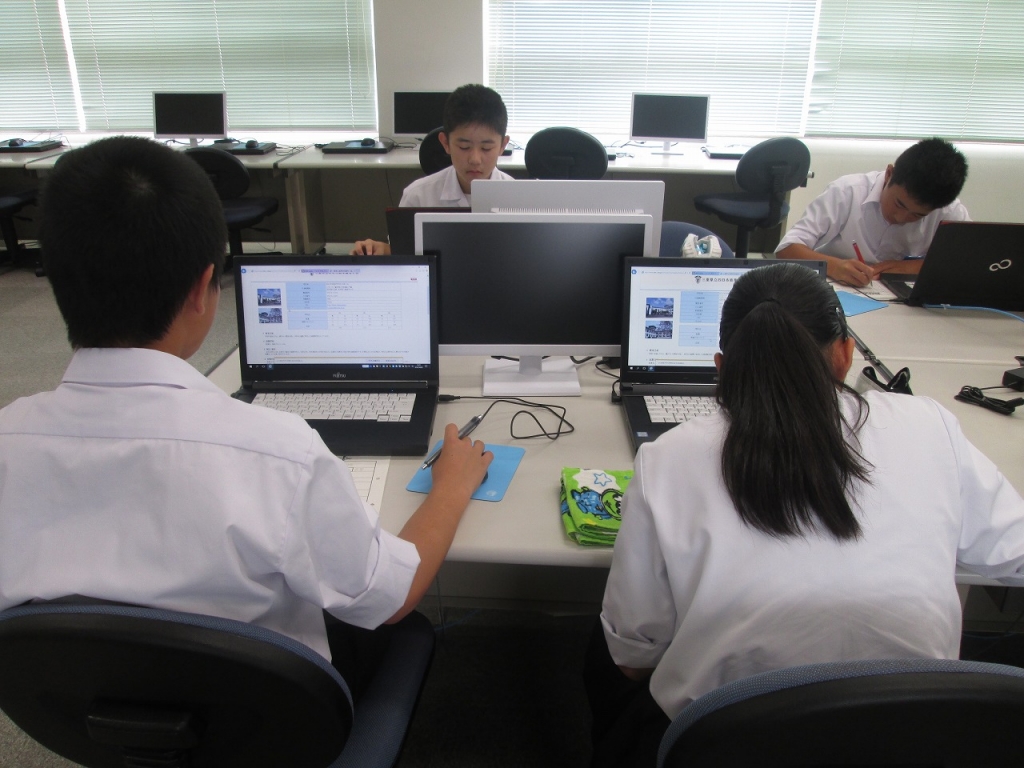 そこで、パソコンを使って、四日市商業高校について調べ学習を行いました。