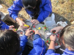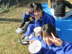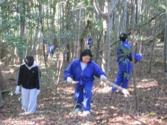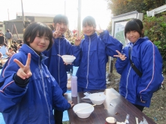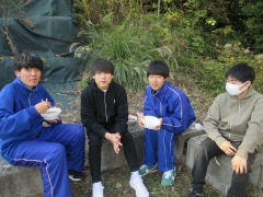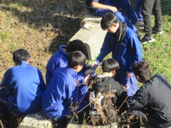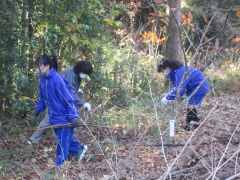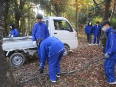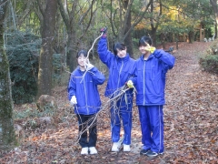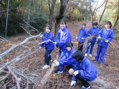 中学生は あらかじめ 切っていただいてあった 木の枝を