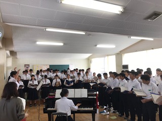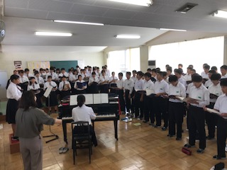 今日、3年生の合唱練習がありました。3クラスそろっての練習は初めてでしたが、昼休みに各パートごとに練習してきた成果を出し、見事なハーモニーでした。今後練習を重ねて上達していくのが楽しみです。