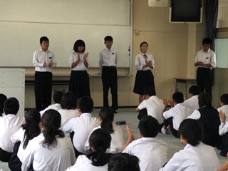 今日の6限目は、視聴覚室で学年集会を行いました。