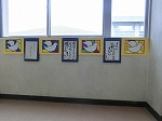 次は美術の掲示物。正面玄関と、美術室前にあります。美術室前の廊下の作品は、3年生の言葉と1年生の作品のコラボレーション。卒業式ももうすぐですしね。