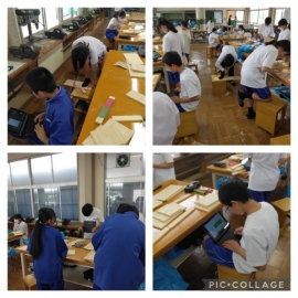 タブレットでは、自分の作品を写真にとって、課題に対して
