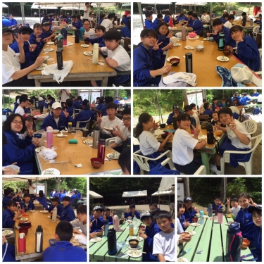 出来上がった豚汁とわかめごはんを食べました。野菜が少し硬かったり味が薄かったりした班もありましたが、自分たちで作ったごはんは格別の美味しさです。たくさんおかわりしていました。
