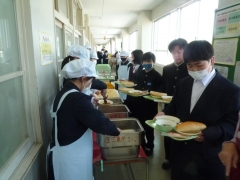 中学校生活初めての給食は、要領がわからず、大変でした。