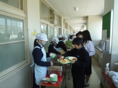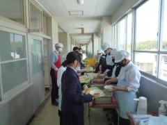 しかし、徐々に小学校で培った給食配膳の技術を発揮し、なんとか盛り付けを終えました。そして、みんな揃っていただきました。だんだん慣れていって配膳のスピードも上がっていくと思います。