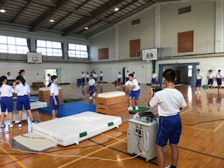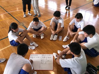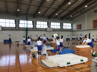 今日の保健体育は跳び箱の授業でした。自分の跳んでいる姿を自分の目で確認をできるように授業の中でICT機器を活用しています。たくさんの先生が参観する中、生徒同士でアドバイスをするなど一生懸命取り組む姿がありました。