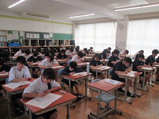 9月2日(火) 一年生は1~5限に「夏休みの確認テスト」に取り組みました。