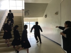 今回は今までと違い、生徒は避難訓練を行うこと知らず抜き打ちで行われました。