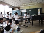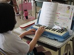 3年生は「ドレミで歌おう」4年生は「いいことありそう」の曲を鉄琴で演奏し、器楽の学習をしています。鉄琴の数が限られているので、自分の順番でないときには、鍵盤ハーモニカの鍵盤を同じようにひいて練習していました。