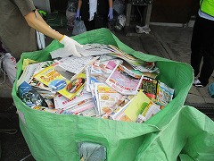 山之一色町、坂部台、坂部が丘の各地区に設けられた集積所に朝早くから、新聞紙・段ボール・雑誌・古着・牛乳パック等がたくさん運ばれてきました。
