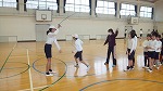 5年生がダブルダッチに挑戦していました。二本の縄の間を跳ぶのですが、入るタイミングがとても難しいです。向かい縄を先に跳ぶとうまく跳べます。そのために二本の縄は青と白に分けて練習しています。
