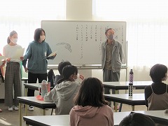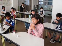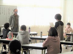 まず、代表児童3人から服部さんにお礼の言葉を伝えました。中には、