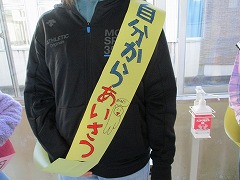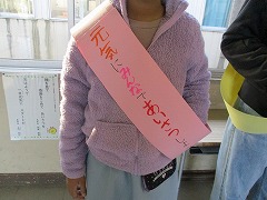 胸には「元気にみんなであいさつしよう」「自分からあいさつ」等、自分たちで作ったタスキをかけ、頑張ってくれています。