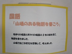 始めと終わりの場面の2枚の絵を見て物語を書きました。物語の山場を想像して表現しました。
