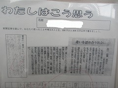 新聞の記事を読み、筆者の考えに対する賛成、反対の立場をはっきりさせる意見文の形で表現しています。1学期から継続しています。