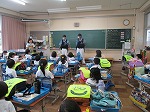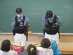 秋の交通安全運動の一環として、北警察署から二人の警官の方が来校してくださいました。そして、1年生の下校に付き添っていただきました。