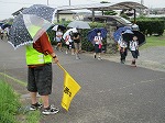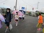 どの班も高学年が車に気を配りながら、一列に並ばせて、安全に登校していました。