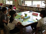 体育委員会は倉庫の整理整頓。図書委員会は、しおりづくりや読書週間の計画。環境委員は、掃除道具の整理整頓を呼びかけるポスター作り。給食委員はランチルームの清掃。児童会は、6月の生活目標を話し合っていました。