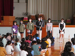 8:30から全校児童が体育館に集まり、認証式・表彰式を行いました。