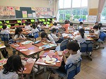 学校再開後、教室でアゲハ蝶の幼虫を育てていた1年生の子どもたち。先日、図工で「ちょうちょ作り」をしていました。紙皿を切って、子どもたちが各々家から持ってきた飾りを貼り付けて、きれいなちょうちょがあそこにもここにも出来上がっていました。