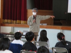11月28日(月)5限目、四日市大学副学長の鬼頭浩文さんによる、4・5年生を対象にした防災学習が行われました。