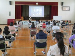 東日本大震災や熊本地震、避難所の写真を通して、具体的な被害や生活の様子を教えていただきました。子ども達は、被害を少なくするためにどのような対策や準備が必要なのか考えることができました。