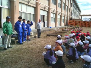 プランターに3個ずつ花の苗を植えました。「いつ咲くのかな?」、「きれいなお花が咲いたらうれしいな。」など、みんな楽しそうに植えていました。ちょうど、職場体験で来ていた三重平中学校のお兄さんたちとも一緒にして、楽しそうな1年生でした。