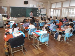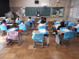 県内の初任・中堅の先生方が来られ、その授業の様子を見て、研修会をしました。