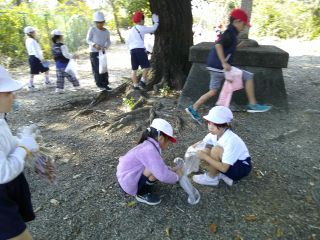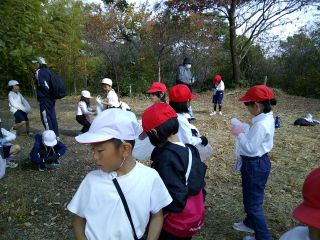 1年生が城山緑地に、どんぐり拾いに行きました。