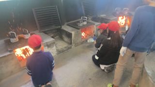かまどに火をつけるのも、野菜を切るのもひと苦労。