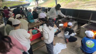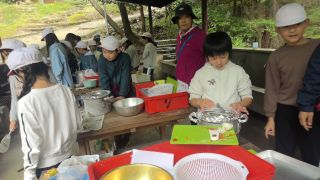 慣れない活動ながら、一生懸命みんなで、飯盒でご飯を炊き、カレーを作りました。