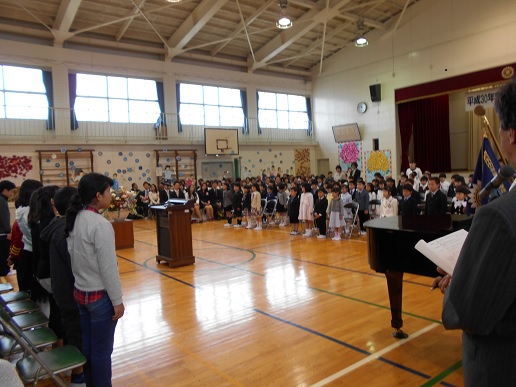 入学式には6年生が代表して出席しました。6年生は校歌を歌って、素敵な歌声を響かせてくれました。