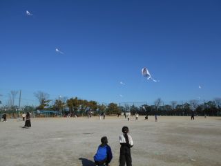 とても良い風が吹いていて、6年生の上手なアシストで、たこは高くあがって、1年生は大喜びでした。