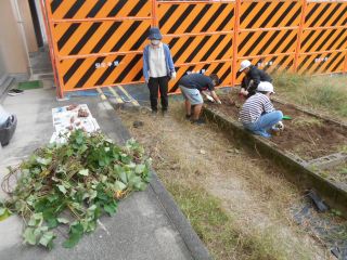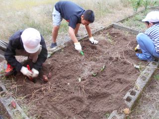なかよしの学級園で、さつまいも掘りをしました。
