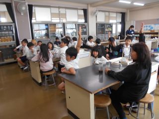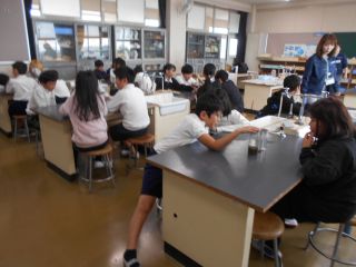 自分たちの排せつ物などが混じった汚れた水が下水に流れ、ごみを取り除き、微生物によって分解、そしてきれいな水になる様子を実験を交えながら教えていただきました。
