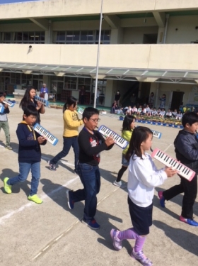 幼稚園の園庭での演奏は体育館で行なった時とは違った良さがあり、とてもすてきでした。