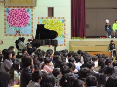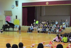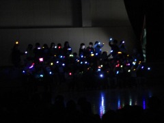 出し物の1番目は3年生でした。1番最初の出し物と言うこともあって、きっと緊張したのではないかと思います。今までの練習の成果を精一杯出し切って、すばらしい「モチモチの木」の音楽劇を見せてくれました。懐中電灯で作った色とりどりのライトもとっても綺麗でした。