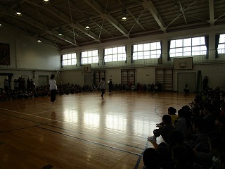 始業式に引き続き、6年生の子どもたちがなわとびの紹介をしてくれました。