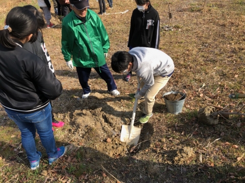 しろやま倶楽部の方々と一緒に植樹をしました。