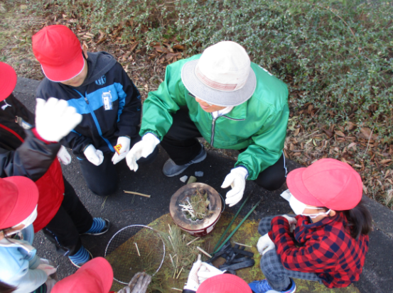 しろやま倶楽部さんに使い方を教えてもらいながら、七輪で餅を焼く体験をしました。