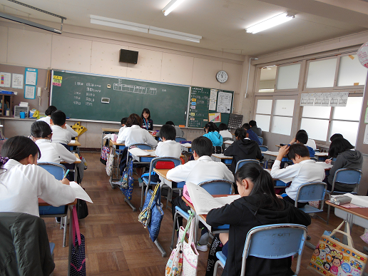 1限目~4限目は、国語A算数A、国語B、算数B、理科ABの学力調査でした。子ども達は慣れない問題に苦労しながらも一生懸命に問題に取り組みました。