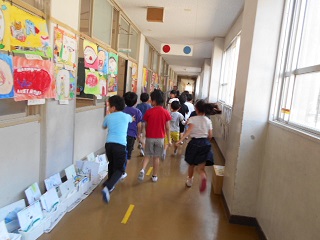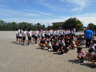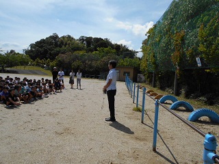 一番近くに侵入のあった2年生は、とっても素早く全員避難することができました。また、その他の学年も不審者確保の連絡を受けて全員が運動場に避難しました。