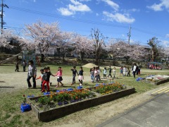 今日の2限目は1年生の子どもたちが南運動場に出て、南運動場の使い方の勉強をしたり、学級写真の撮影をしたりしていました。