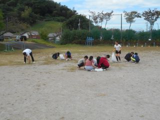 運動会に向けて、自分たちが走ったり、演技したりする運動場を整備しよう、と5・6年生が掃除時間に草抜きをしていました。