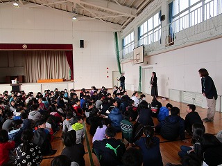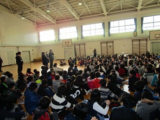 校長先生からのお話では、充実した冬休みを過ごすために「あんぜん」「けんこう」「たのしく」の3つの言葉をキーワードに、いろんな先生からお話をしてもらいました。