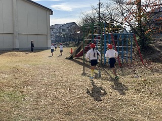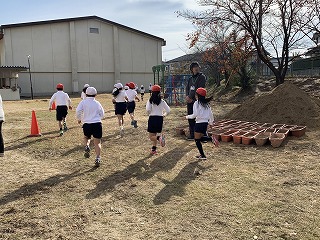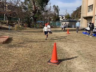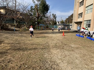 ちょうど低学年運動場では1年生の子たちも活動をしていたのですが、さすが中学年、上手に避けながら走ってくれていました。