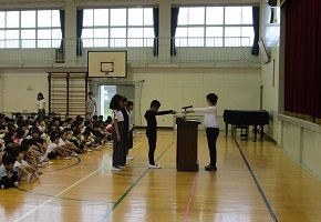 昨日行われた三泗小学校陸上記録会の入賞者、夏休みの自由研究(科学展、社会科作品展)と読書感想文コンクールで、学校代表に選ばれた子たちの表彰を行いました。