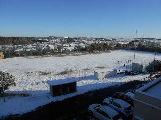 雪がたくさん降って、校庭が一面銀世界になりました。