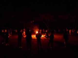 夕食(たくさんご飯とみそ汁をおかわりしてました)をとったあと、キャンプファイアをしました。