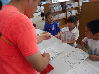 スタンプラリーカードのチェックポイントまでスタンプをもらうとラッキーチャンスで先生とジャンケンができるなど、おもしろい仕掛けがいっぱいで、子どもたちは楽しみながら読書に親しんでいます。
